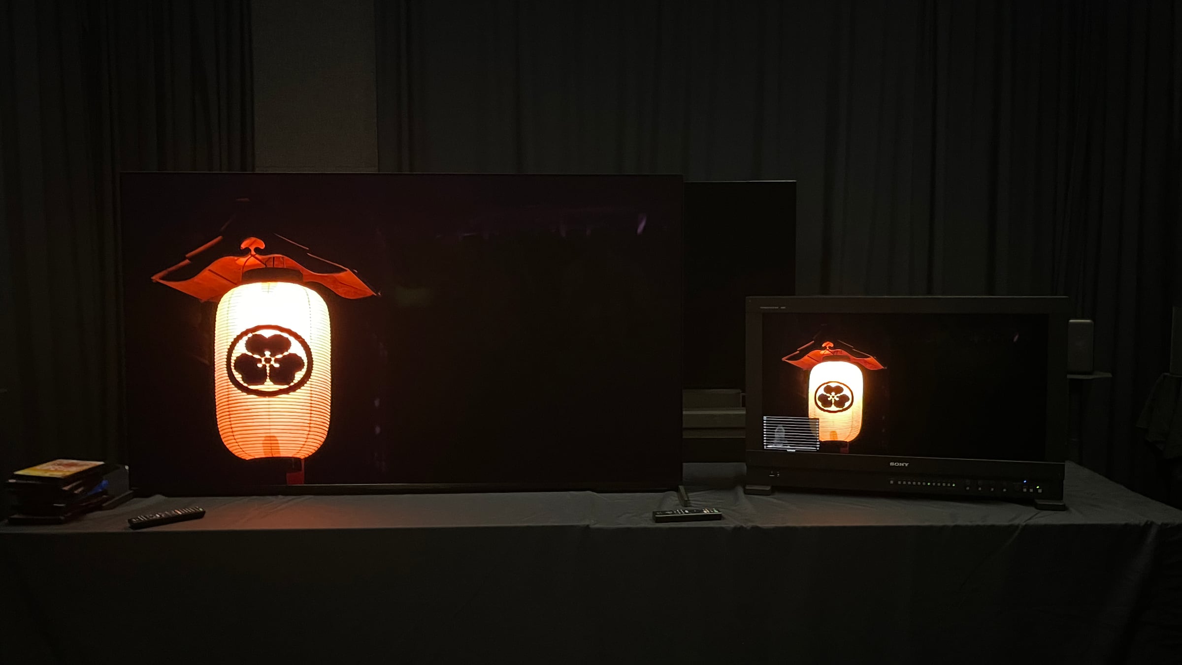 Ved en anden demonstration, hvor Flatpanels fik alenetid med Bravia 8 II ved siden af HX3110, kunne vi konstatere, at Bravia 8 II ikke når referenceskærmens maksimale lysstyrke på 4000 nits. Dog overgik Bravia 8 II i visse situationer – såsom små lyse stjerner på kun én eller få pixels mod en sort baggrund – faktisk HX3110 (dual-layer LCD) på HDR-billedkvalitet. En anden interessant observation er, at Bravia 8 II – ligesom andre QD-OLED skærme – dækker mere af Rec.2020 farverummet end HX3110. Udfordringen er dog, at Hollywood-studierne farvegraderer indhold på HX3110, hvilket betyder, at der kun findes meget lidt indhold, der til fulde udnytter potentialet i QD-OLED.