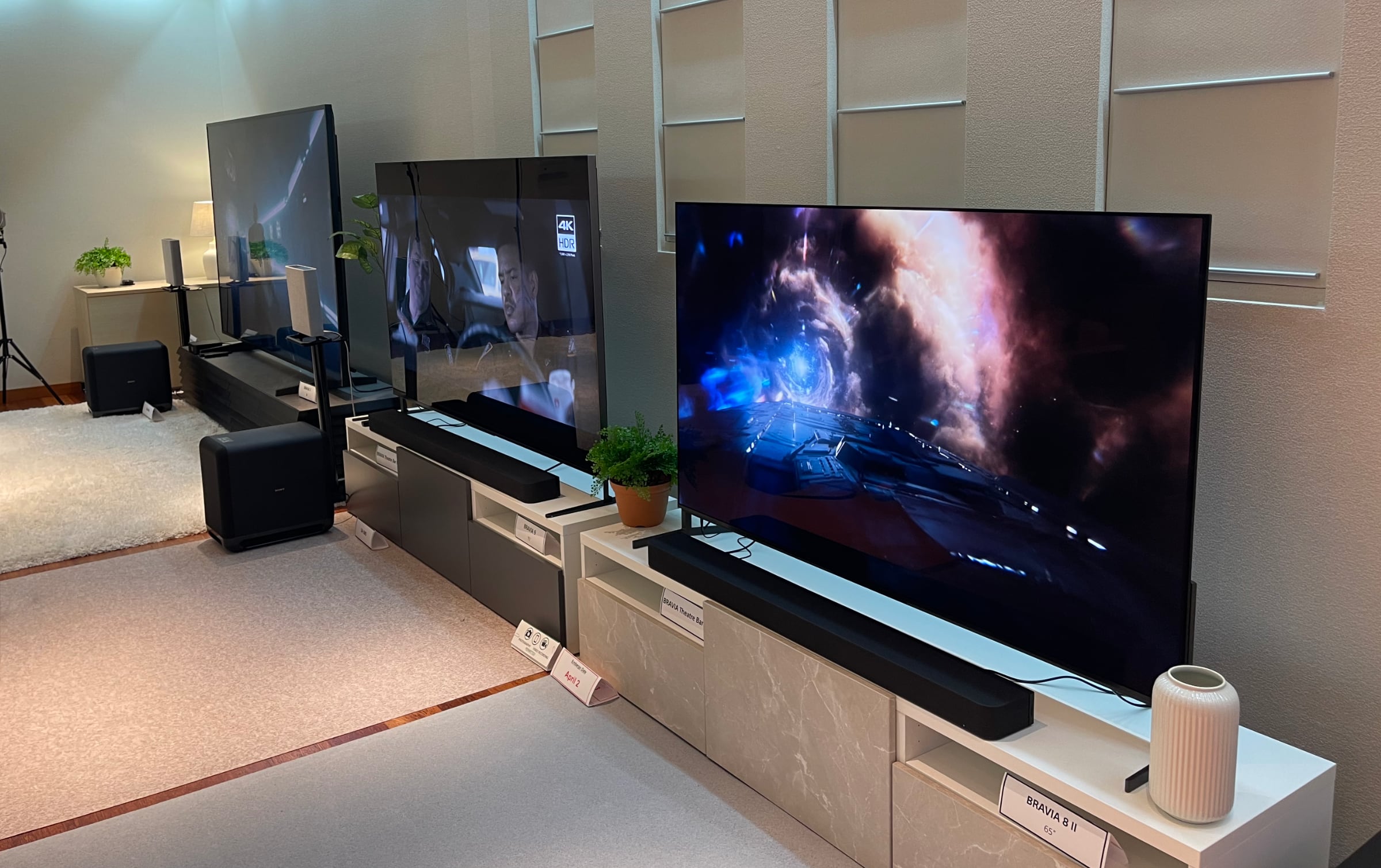 Venstre: 98" Sony Bravia 5. Midt: Sony Bravia 9. Højre: Sony Bravia 8 II. Foto: Flatpanels