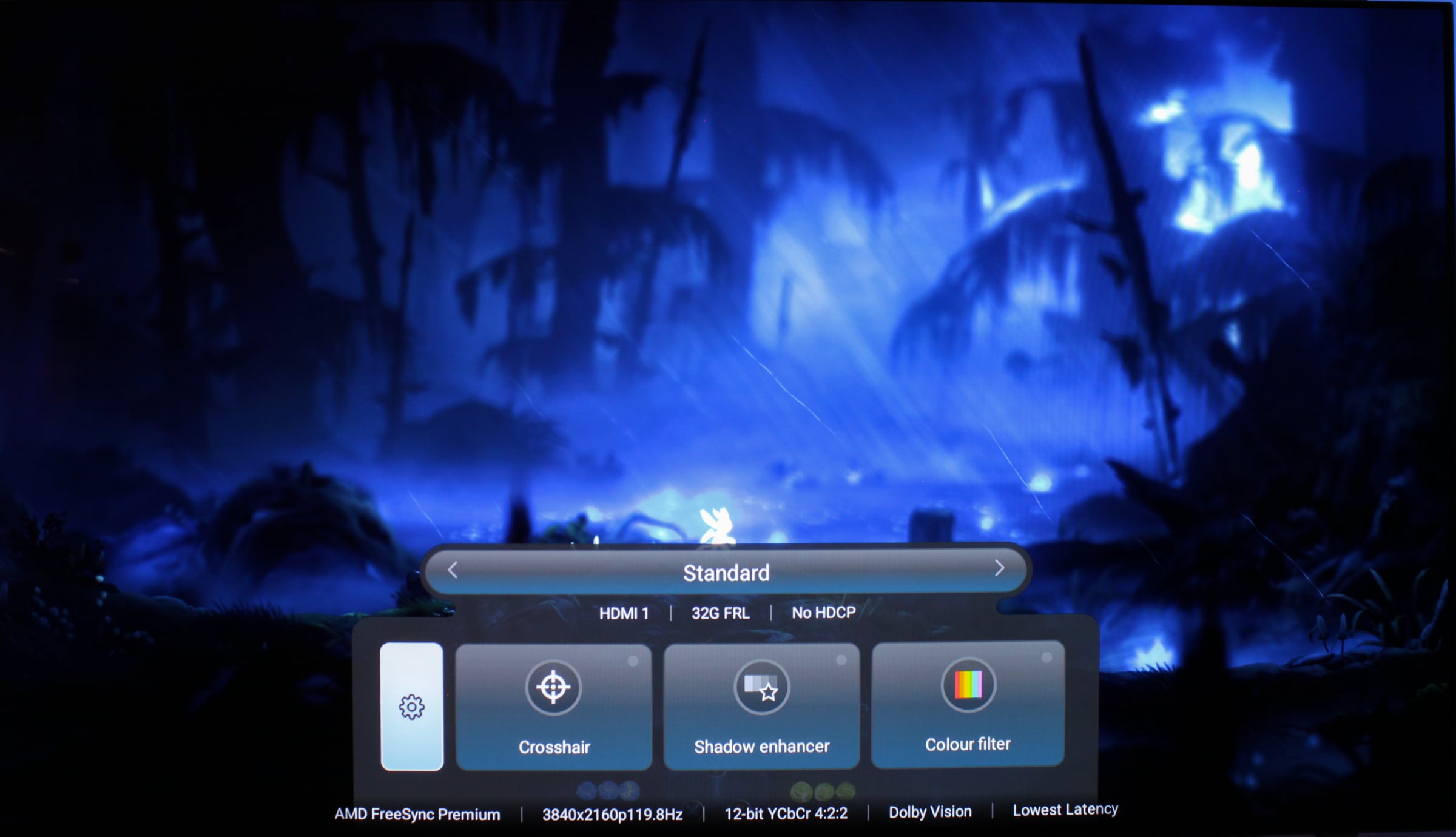Som afløser for sidste år OLED809 har OLED810 – ikke overraskende – mange lighedspunkter. Fra et billedmæssigt synspunkt er den største forskel, at 2025-panelet igen er blevet en tak mere lysstærkt. Lysstyrken i fuld skæm måler vi til nogenlunde det samme – omkring 200 nits – mens højlyset når op i ca. 1300 nits (mod 1100 nits sidste år) med et kalibreret billede og 1500 nits i dynamisk billedprofil. Forskellen er ikke afgørende i praksis. Ikke desto mindre er det et pænt løft i forhold til modellerne før 2024, hvor OLED TV kæmpede med at nå 1000 nits, men som sædvanlig med teknologi, rykkes målstregen hele tiden: Det er nu RGB Tandem OLED (f.eks. Philips OLED910) og QD-OLED, som levere højeste lysstyrke indenfor OLED. Det overføres til billedkvalitet i praksis på en sådan med, at man får rigtig flotte HDR-billeder i og med, at det meste HDR-indhold stadig er skabt til maksimalt 1000 nits højlys. OLEDs pixelstyring af lys og farver sikrer, at indholdet gengives, som det er skabt, og meget tæt på referencen, med dyb kontrast, perfekt sort og klare farver, såfremt indholdet dikterer det. Vigtigst af alt, så er der ikke væsentlige kompromisser, som degraderer billedkvalitet, måske ud over de allermest lyse scener i f.eks. skisport, hvor der stadig mangler lidt lysoverskud i panelet ift. miniLED LCD, der så omvendt har andre kompromisser. Ikke desto mindre mener vi, at Philips OLED810 snildt kan bruges i en oplyst stue. OLED bliver ved med at imponere os hvad angår HDR-billedkvalitet, særligt når man tænker på, hvor meget man får for pengene. Der er ikke så meget at tilføje i forhold til Philips' tidligere 8-serier. Også i SDR leverer OLED810 eminente billeder og vi konstaterede ingen problemer med banding eller lignende. OLED810 er stærk allround til film, serier, tv-programmer, sport mv. Vi anser igen i år skærmen som det mest direkte alternativ til LGs populære C-serie. Nu savner vi bare 83-tommer fra Philips. Som nævnt før, har Philips' P5-videoprocessor avancerede systemer, der kan tilpasse billedet dynamisk ift. dit kiggemiljø eller indholdets karakter. Vi slår dem fra i jagten på det mest præcise billede. Mere interessant er Philips' 'AI'-funktion, der automatisk kan detektere film i streaming-signalet og skifte til Filmmaker Mode. Det virker, men den skifter dog også, når man f.eks. ser video-trailers i Prime Video appen, hvilket er distraherende. Vi opfordrer Philips, Google, Amazon og Apple til i stedet at få opdateret Apple TV appen og Prime VIdeo appen med den officielle implementering fra folkene bag Filmmaker Mode, hvor metadata i signalet informerer TV'et om, hvornår det skal skifte ind og ud af Filmmaker Mode.Annonce:På gengivelse af hurtig bevægelse kan OLED få især film og serier i 24fps samt sport i 50fps til at se hakkende eller "stroboskopiske" ud på grund af den lave billedfrekvens i indhold kombineret med OLEDs hurtige pixelresponstid. Hvis det generer dig, kan du prøve Philips’ 'Movie'-indstilling under Motion -> Motion Styles (Bevægelse -> Bevægelsestyper), som udglatter billedet en smule uden at give for meget "soap opera"-effekt. Det er pt. det bedste kompromis, vi har fundet hos Philips. Vi mener fortsat, at Sony er en smule foran på dette punkt. Philips har brugt Pentonic 1000 chippen i 2023, 2024 og nu også i 2025 OLED-modeller. Derfor er support af spilfunktioner stort set uændret, ud over at højeste billedfrekvens blev løftet fra 120 til 144Hz sidste år (med en PC). Med spilkonsoller når man op i 4K 120Hz Dolby Vision med Xbox Series X og 4K 120Hz HDR10 med PS5. Det klarer Philips OLED810 uden problemer. Det hele foregår via HDMI 2.1 porte, der klarer VRR og ALLM. Vi målte input lag til omkring 13 ms. Den største begrænsning er stadig, at der kun er to HDMI 2.1 porte. Hvis du har tilsluttet en soundbar til HDMI eARC, så har du kun én HDMI 2.1 port tilbage til spilkonsoller. Ud over manglen på flere HDMI 2.1 porte, er Philips OLED810 det mest direkte alternativ til LG C5, altså drønflot billedkvalitet og hastighed i konsolspil pga. OLEDs høje kontrast og pixelstyring – oveni får man Ambilight, der fungerer godt til at sætte stemningen i spil. Dog giver VRR stadig flimmer og løftet sortniveau. Det gælder alle OLED og miniLED LCD TV. Philips har en spilmenu med bl.a. fast sigtekorn og signalinfo (se foto ovenfor). Game-billedprofilen kunne dog godt være mere farvekorrekt. Betragtningsvinklerne på OLED TV er tæt på perfekte. Ingen bemærkninger.Konklusion