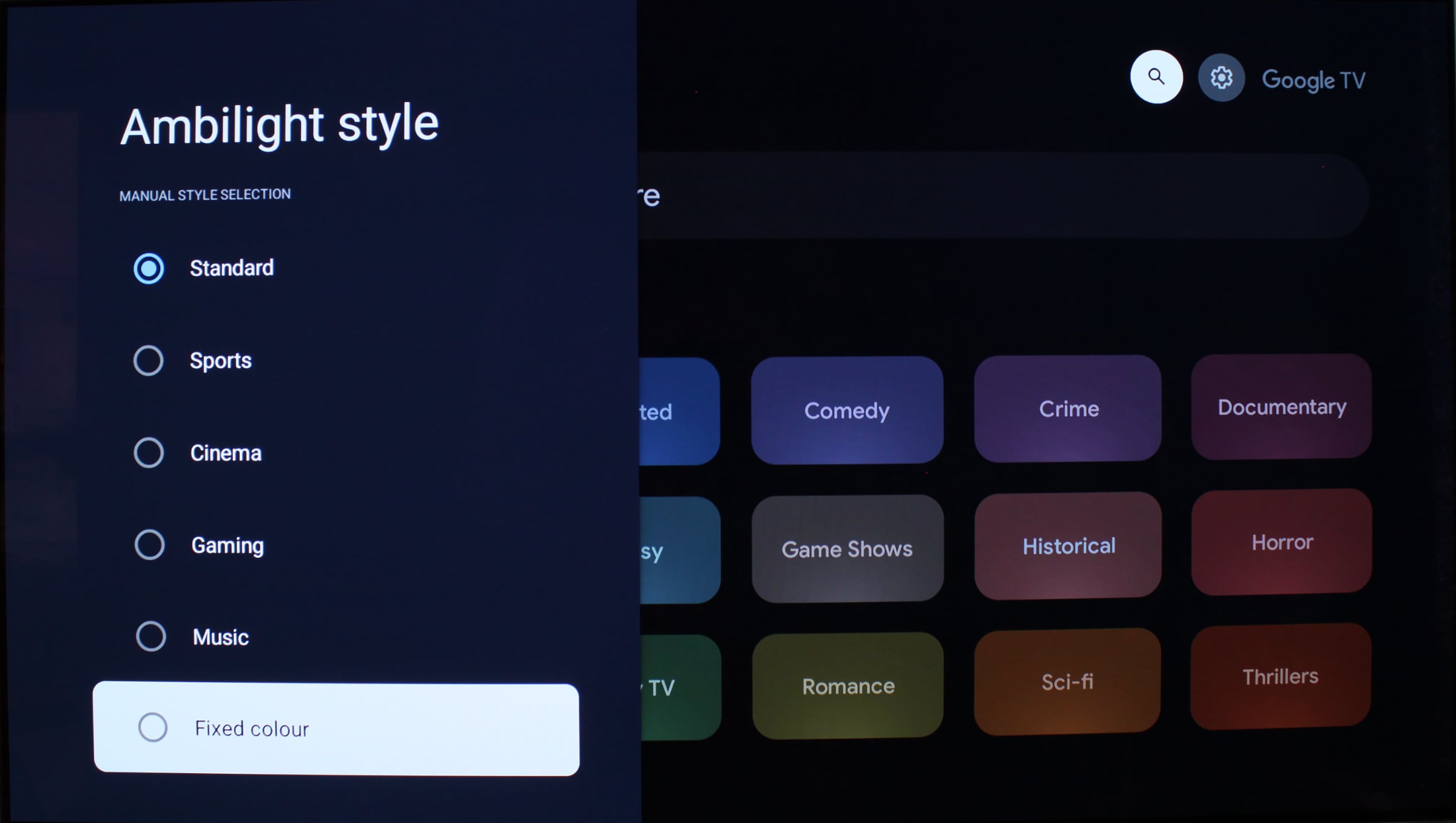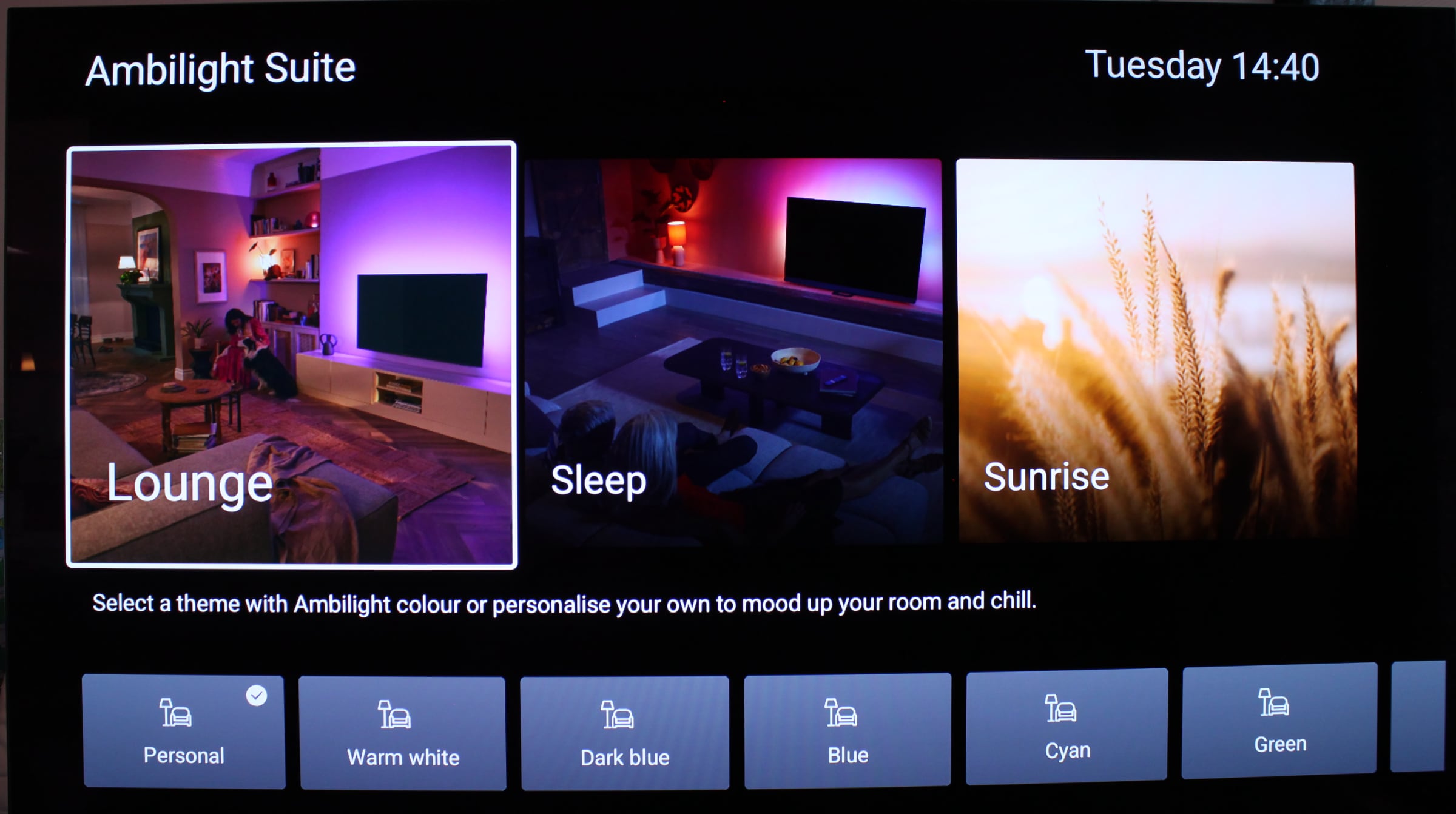 Philips' 2025 Google TV kører stadig MediaTek Pentonic 1000 chip (MT5896), ligesom de to foregående generationer. Det er samme chip, som sidder i eksempelvis Sony Google TV, men i år har Philips opgraderet lagerpladsen, så det er omtrent 17-18GB fri til brugeren efter opsætning. OLED810 har 3GB RAM og Mali G57 GPU, hvilket er uændret i forhold til 2024. En anden opgradering fra Philips er, at OLED810 leveres med Android 14 præinstalleret, mod Android 12 sidste år. Årets nye Google TV, som vi har testet fra andre producenter, kører stadig Android 12. Google har simplificeret opsætningprocessen, så man hurtigere får indtastet sin Google-bruger og kommer i gang, men det udlignes af adskillige ekstra opsætningsskridt fra Philips. Det lykkes os sjældent at gennemføre opsætning af en Google TV-enhed alene via appen til smartphone, og igen med OLED810 måtte vi færdiggøre opsætningen på selve skærmen, hvilket er et lille irritationsmoment, men det skal trods alt kun gøres én gang. Som med alle andre Google TV enheder, så kan man vælge at opsætte skærmen som fuld Google TV eller 'basic TV', hvilket kan være nyttigt, hvis man alligevel bruger en ekstern medieboks. Fordi OLED810 kører samme chip som sidste års udgave, yder den også på samme niveau. Se tabellen nedenfor:Derudover er Google TV-delen mere eller mindre identisk med sidste års modeller, hvorfor vi vil henvise til testen af Philips OLED809 for en gennemgang. Samme betragtninger gælder OLED810 og i øvrigt Philips' to nye 9-serier, OLED910 og OLED950. Ligesom sidste år har OLED810 en ekstra 'Philips'-fane øverst i Google TV-brugerfladen. Her kan man få en introduktion til Ambilight, tilgå en eller anden NFT Collection og læse manualer og tips. Fanen kunne godt være udnyttet bedre, idet Philips har en del interessante funktioner, der kunne fremhæves. Senere på året lancerer Philips sin Moment app, hvor man via en smartphone kan udvælge fotogallerier til visning på TV'et. Vi har ikke haft mulighed for at teste den, men læs denne artikel for mere information. Skal man trække noget frem, så skal det være Ambilight, hvilket stadig er unikt for Philips TV, selvom der gennem årene er kommet en række alternativer, der kan kobles til skærme fra andre mærker. Ambilight er dog stadig det eneste integrerede stemningslys i TV-skærme og det mest funktionalitetskomplette system. På fjernbetjeningen – som vi vender tilbage til om lidt – findes i Ambilight-knap, der giver hurtig adgang til at skifte mellem Ambilight-profiler. Ønsker du ikke, at lyset skal følge farverne i billedet, kan du vælge lys i en fast farve, såkaldt bias-belysning, hvilket kan hjælpe med at aflaste øjnene i mørke omgivelser. Holder man Ambilight-knappen nede på fjernbetjening, så får man nogle avancerede indstillinger, men man skal stadig igennem den normale menustruktur (under Skærm og lyd) for at finde de udbyggede Ambilight-funktioner – dette kunne godt strømlines. Her finder man f.eks. Ambilight Lounge (Ambilight når TV'et er slukket), Sleep (funktion til at hjælpe folk med at falde i søvn) og Sunrise (vækkeur med Ambilight). Man kan lade Ambilight tilpasse sig indholdet automatisk, rummets lysniveau, kompensere for bagvæggens farve og justere bias-lysets farve. Alle disse ting gør Ambilight væsentligt mere brugerjusterbart end de alternativer løsninger, hvorfor vores anbefaling er at købe et Philips Ambilight TV, hvis du søger stemnings- eller bias-lys. Vores holdning til Google TV overordnet består. TV-platformen er den bedste, som er integreret i en TV-skærm, og har efterhånden stort set relevante apps (Xbox appen mangler fortsat), både internationale og danske. Hardwaren halter dog bagefter Apple TV 4K og for så vidt også den aldrende Nvidia Shield-boks. Det er ærgerligt idet vi mener, at der stadig er et meget stort uforløst potentiale i Google TV som platform. Platformen opdateres stadig løbende, så der kommer nye funktioner i TV'ets levetid, men ikke i samme omfang som Apple TV 4K, og hardwaren vil i sidste ende stille naturlige begrænsninger for i hvilket omfang nye funktioner kan køre på Google TV'et. I vores test af Philips OLED809 sidste år oplevede vi knas med HDMI CEC (EasyLink). Det blev bedre med en firmwareopdatering, men ikke helt godt. I dette års OLED810 virkede det hele – tænd/sluk, styring af lydstyrke, skift input osv. – som forventet. Philips har løst udfordringerne, hvilket sikrer, at du kan styre en ekstern boks med Philips' fjernbetjening eller Philips TV'et via en fjernbetjening til en ekstern boks, f.eks. Apple eller Googles bokse. Der er i skærmen indbygget WiFi 6 og Bluetooth 5.2. Der er også to USB-porte, men vær opmærksom på, at Philips ikke længere understøtter PVR-funktionalitet (optage/pause).Google TV – CPU/GPU benchmark