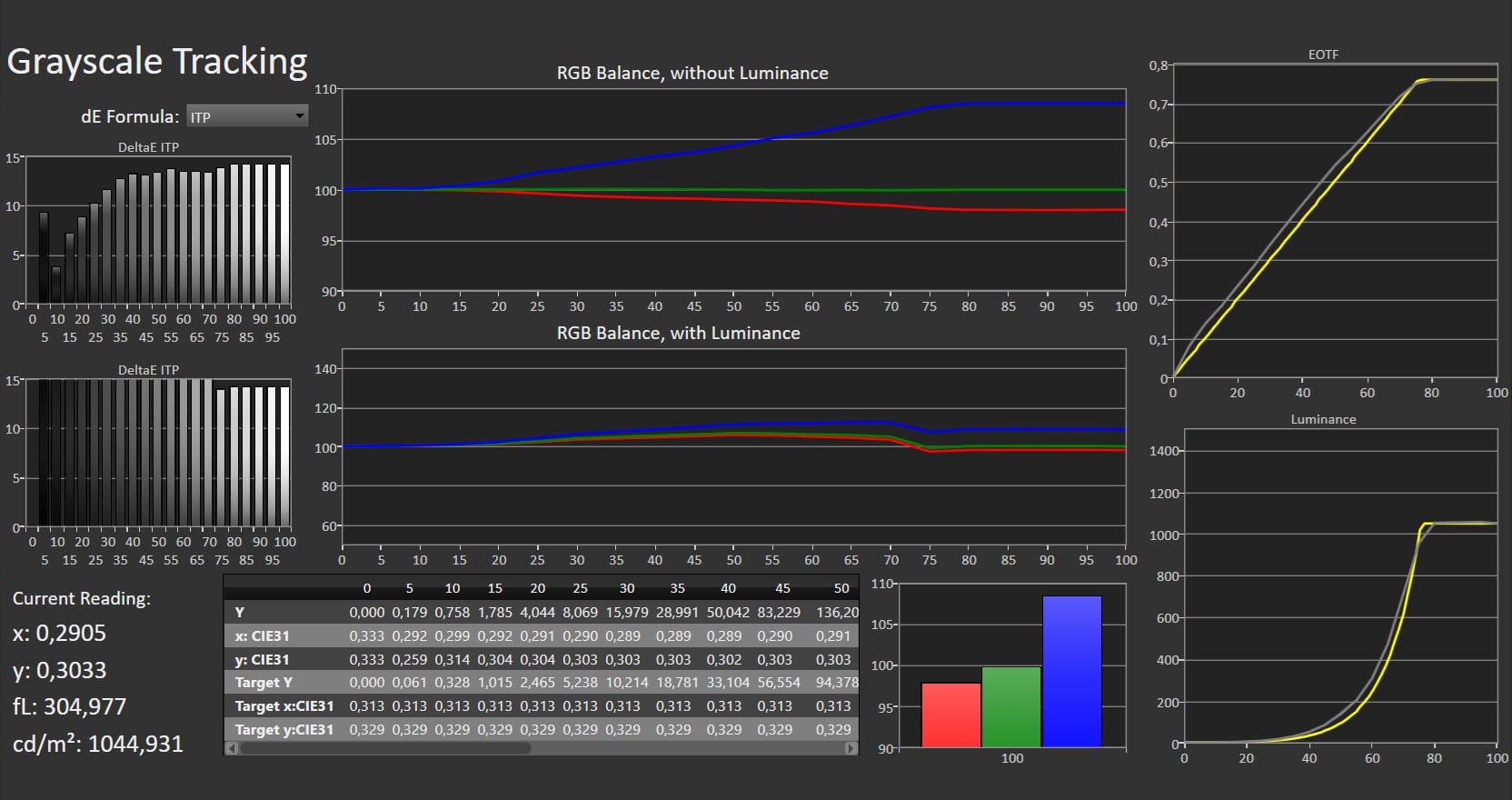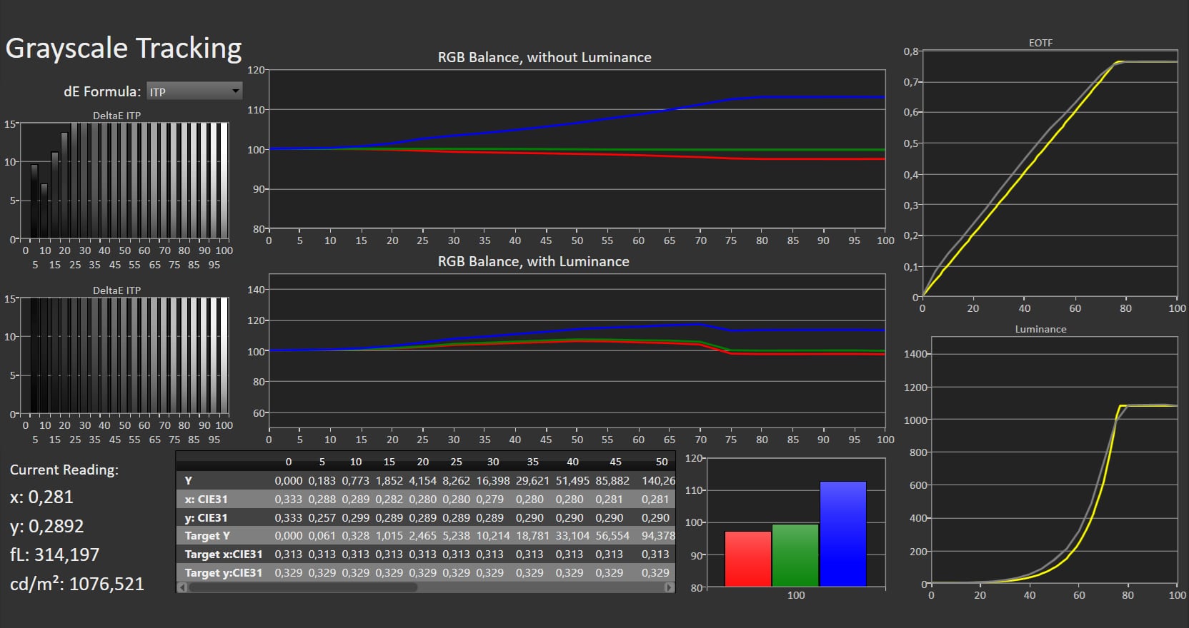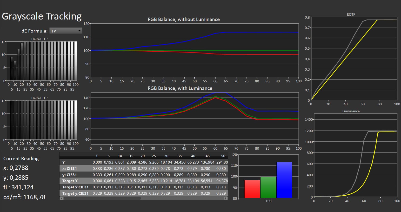 Vores "målinger"-afsnit omhandler alle de ting vi går og måler på TV'ene samlet ét sted frem for at ligge i de enkelte afsnit. Vi henviser til vores artikel omkring bl.a. målemetoder her for en gennemgang af hvordan vi måler under testen. Bemærk: I 2021 implementerede vi en ny metode for måling af gennemsnitligt strømforbrug i SDR og HDR, hvilket gør at tidligere års målinger ikke er 1:1 sammenlignelige. I SDR måles der i ‘Kalibreret' strømforbrug ved en lysstyrke ca. 100-110 nits for at normalisere målingerne på tværs af skærme (vores anbefaling for kalibrerede billedindstillinger kan variere). Denne metode vil blive anvendt fremadrettet.Bemærk: Vi har under testen ikke benyttet os af lyssensoren, men ønsker du, at TV'et selv kompenserer for lyset i stuen, så kan dette aktiveres i menuen.Billedkvalitet